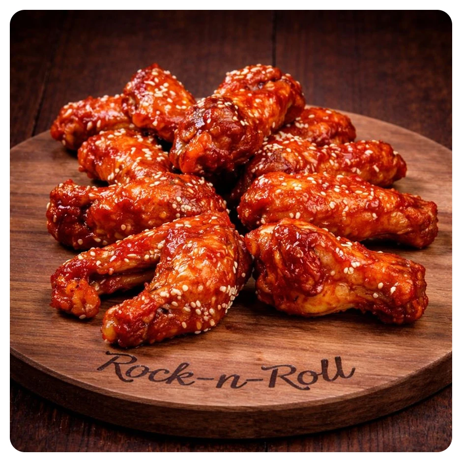 Состав: Крылья куриные, соус Сладкий чили, острый соус Шрирача, кунжут
