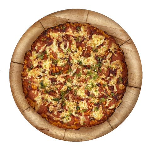 Состав: Колбаски пеперони, черный и красный перец, сыр моцарелла, фирменный соус