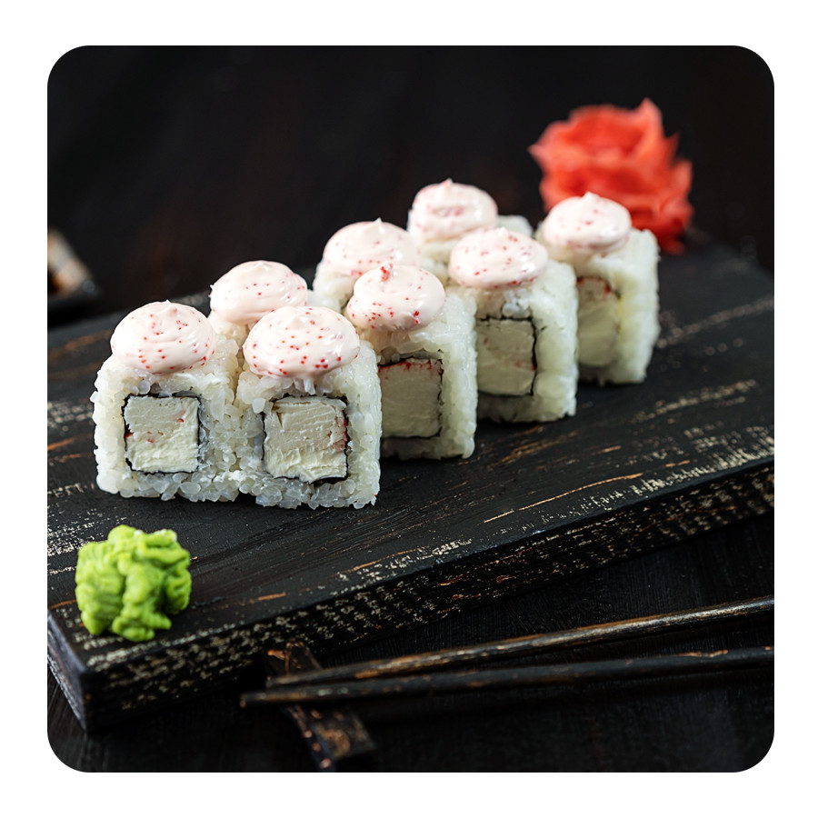 Состав: Соус яки, рис, нори, сыр, снежный краб