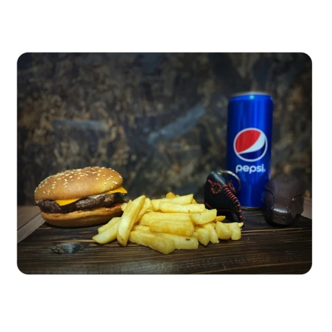 Состав комбо набора: Чизбургер, картофель фри, пепси, игрушка